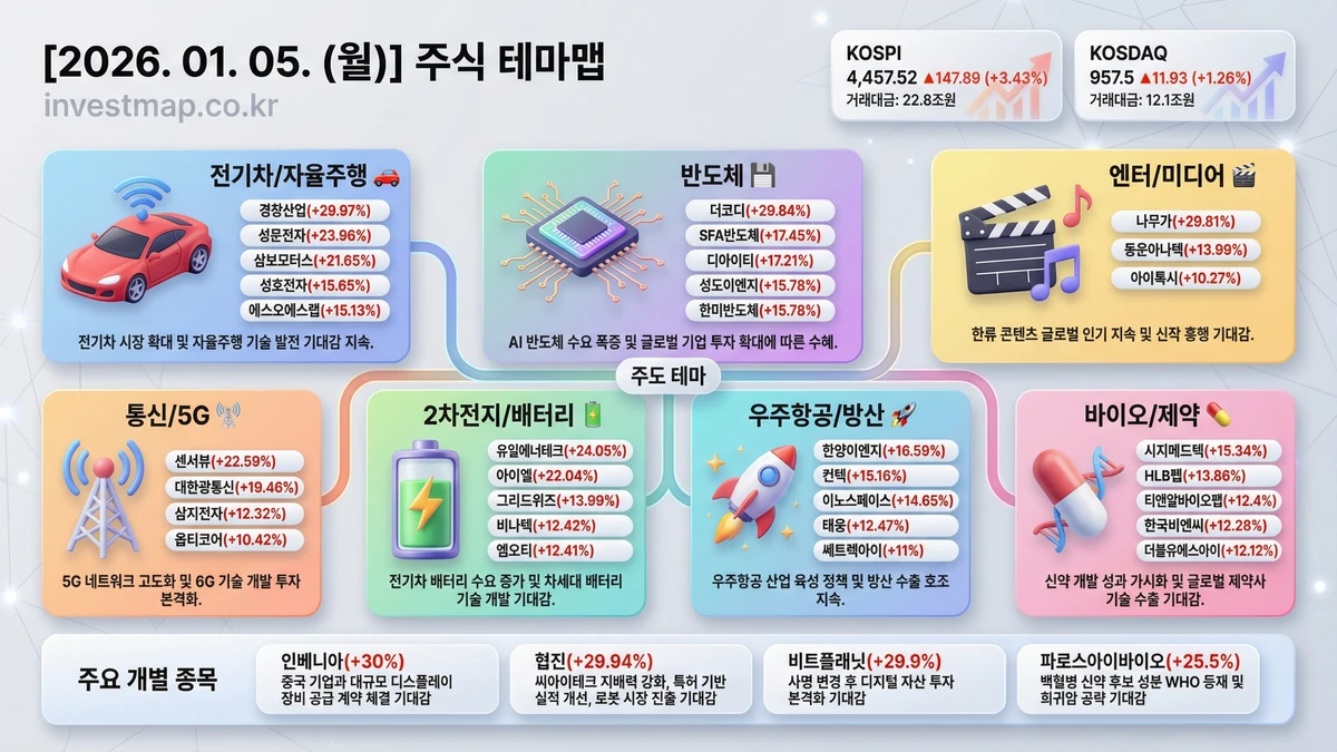 2026년 1월 5일 주도 테마 및 대장주 정리