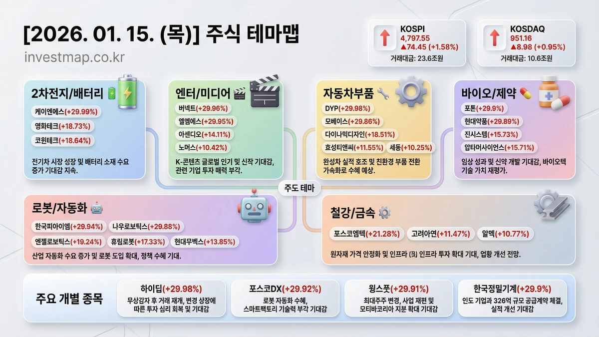 📊 2026년 1월 15일 주식시장 마감 시황 요약