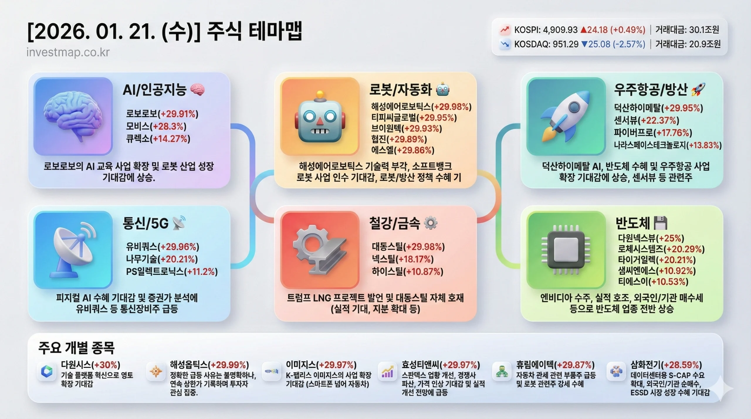 2026년 1월 21일 주도 테마 및 대장주 정리
