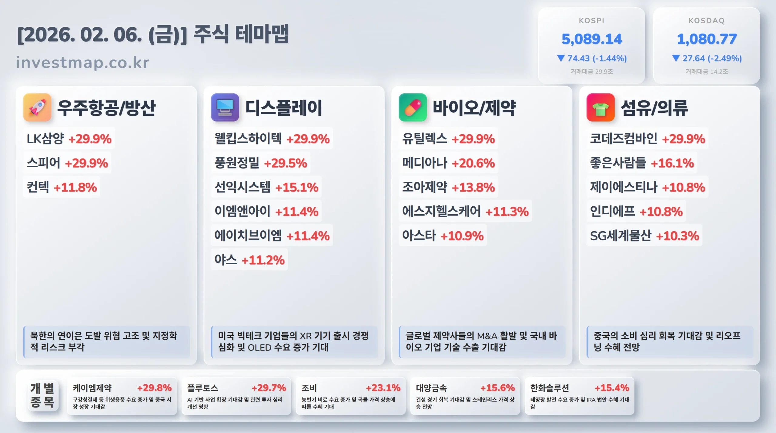 주식테마맵[02.06] 우주항공/방산 LK삼양 상한가